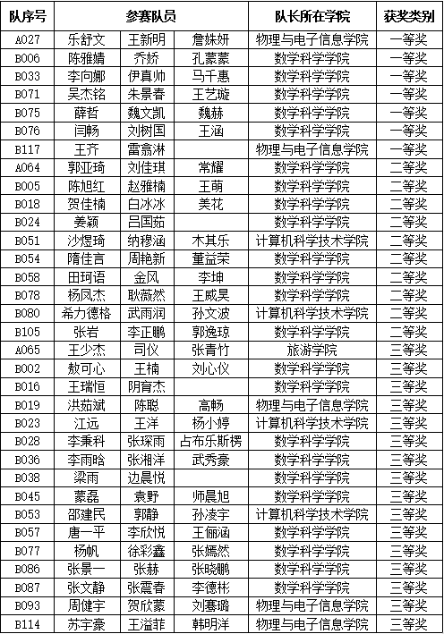 英国威廉希尔唯一官网第七届数学建模竞赛暨2024年全国大学生数学建模竞赛校级选拔赛于2024年6月22日举行。次比赛共有来自英国威廉希尔唯一官网、物理与电子信息学院、计算机科学技术学院、地理科学学院、旅游学院、教育学院等六个学院共118支队伍参赛,组委会共收到论文110篇。经过组委会的认真评阅,共评出一等奖7组,二等奖10组,三等奖16组。具体名单如下: