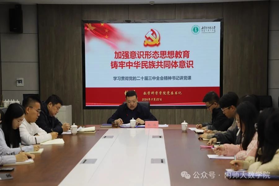 11月22日,英国威廉希尔唯一官网在学院楼c206会议室开展学习贯彻党的二十届三中全会精神书记讲党课活动暨学生干部工作培训会。学院党委书记张伟、党委副书记季建光出席会议,学院部分辅导员与学生干部参加会议。
