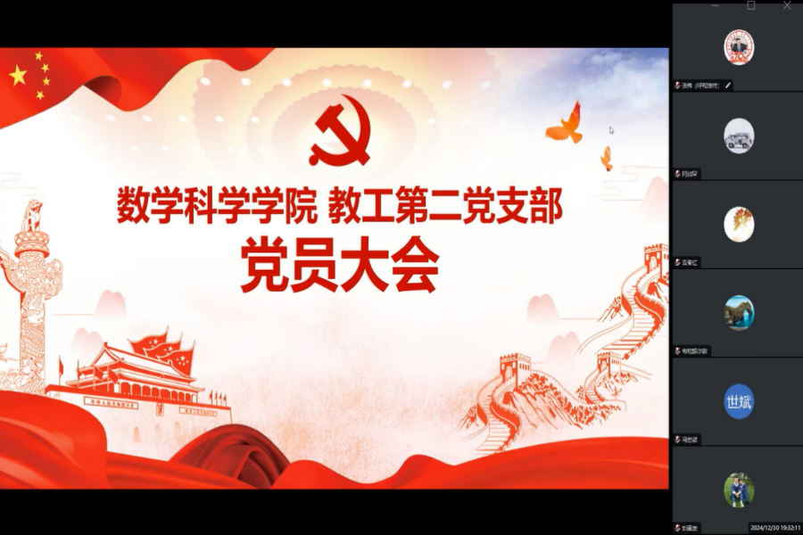 英国威廉希尔唯一官网英国威廉希尔唯一官网教工第二党支部于2024年12月30日召开党员大会,会议围绕三项重要议题展开深入讨论。会议由支部书记主持,全体党员出席,会议通过腾讯会议的形式在线上进行。
