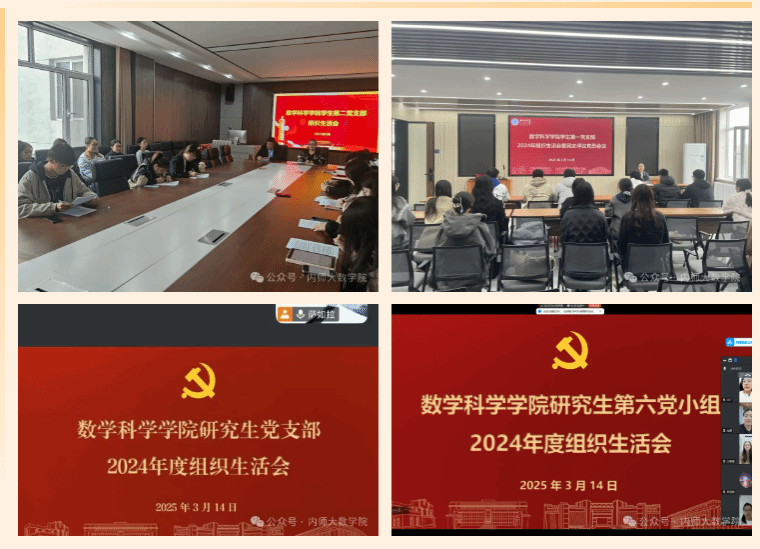会上,各党支部书记传达了学校关于做好2024年度基层党组织组织生活会和民主评议党员工作的相关要求,带领党员师生集中学习了习近平总书记关于党的建设的重要思想,汇报党支部一年来的工作情况,并代表支部作对照检查发言。党员师生紧密联系个人思想和工作实际,围绕会议主题,深入检视自身存在的问题,严肃开展批评和自我批评,明确整改方向和措施。会议还结合学院当前面临的发展形势和任务,针对本学期主题党日活动和基层党建工作进行了交流,最后,各党支部进行民主评议党员。