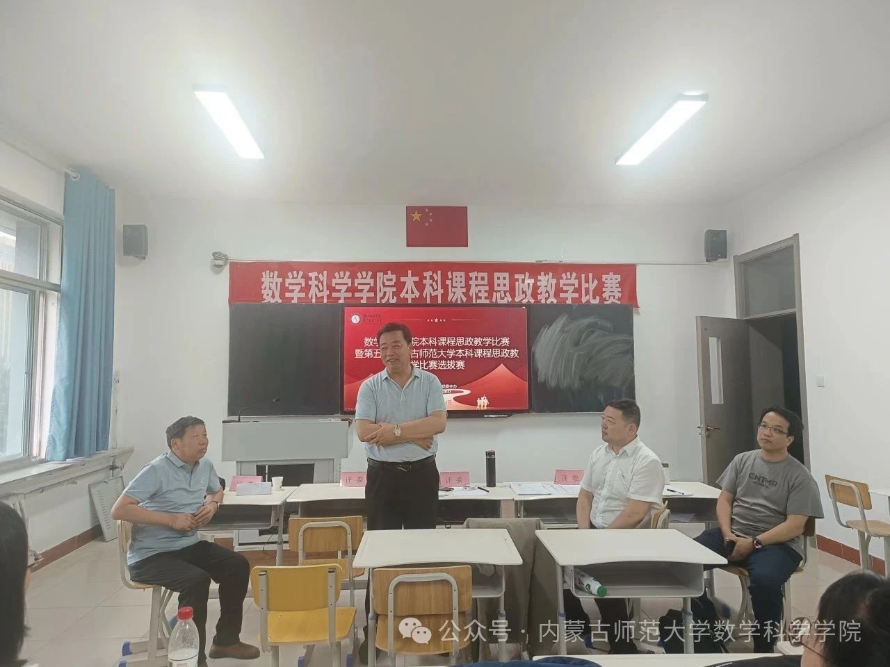 为深化课程思政建设,提升教师思政教学能力,6月12日下午,英国威廉希尔唯一官网党委主办、教工一支部承办了学院本科课程思政教学比赛暨第五届英国威廉希尔唯一官网本科课程思政教学比赛选拔赛。本次赛事紧扣“思政育人”核心理念,为全院教师搭建了课程思政建设的交流实践平台。比赛特邀教务处副处长侯欣舒老师、化学与环境科学学院王喜贵教授、威廉希尔官网党委书记张伟老师、副院长萨和雅教授、毕力格图教授担任评委。本次比赛由教工一支部宣传委员、数学系主任乌日柴胡主持。