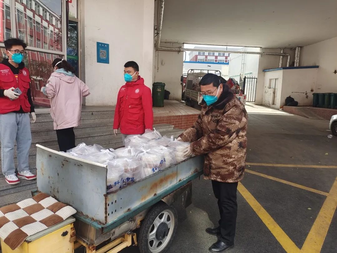 扎其劳院长和志愿者们共同负责将学生的一日三餐送到宿舍楼,保障静默期间同学们能够及时吃到热乎的饭菜。