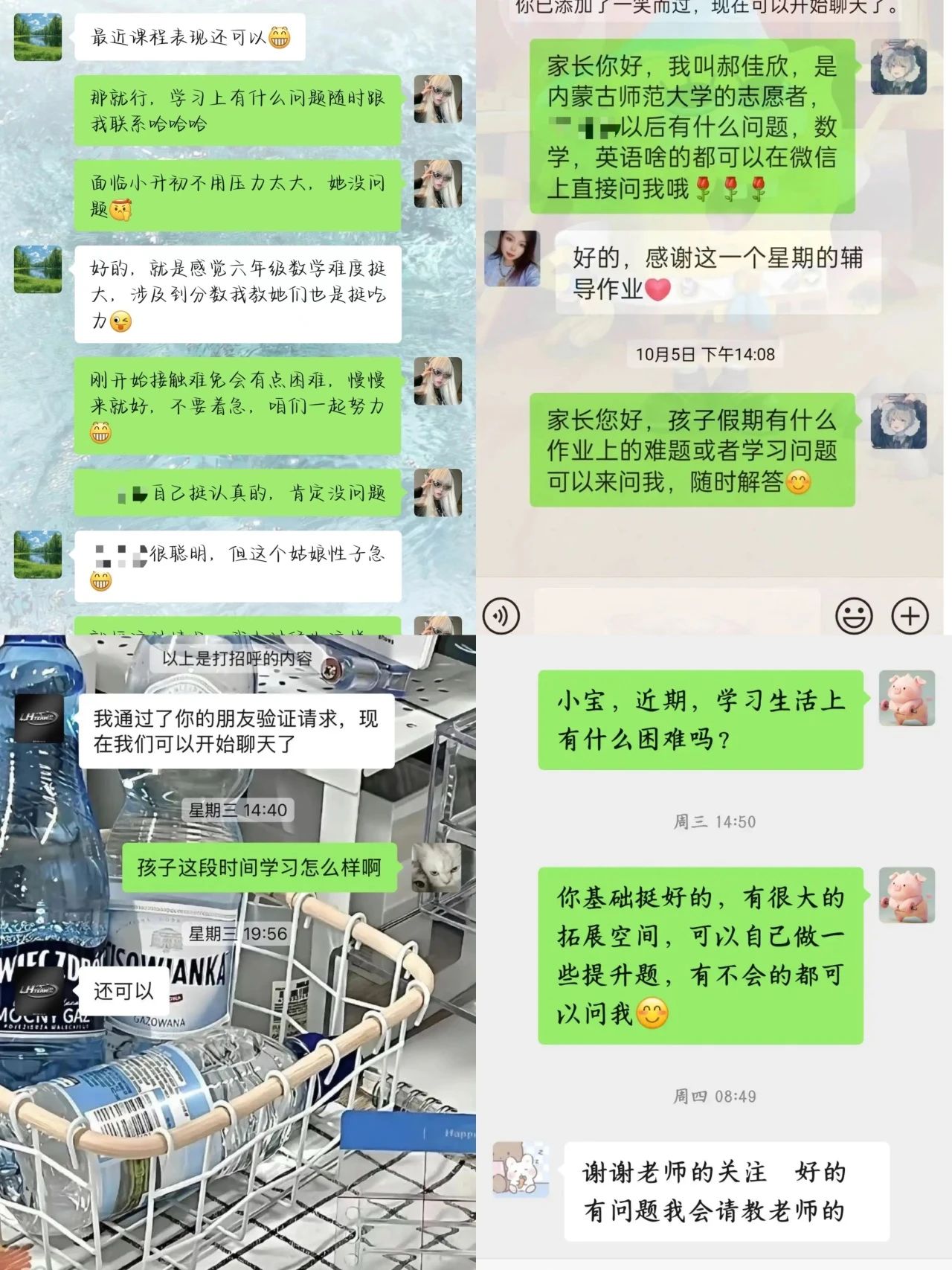 为促进专业知识与志愿服务相结合,弘扬和践行教育家精神,英国威廉希尔唯一官网按照暑期“三下乡”社会实践活动计划,持续推进线上结对共建活动。志愿者们利用微信、腾讯会议等互联网平台,跨越地理界限,将知识、爱心与温暖传递到公喇嘛小学学生及其家庭中去。他们针对“结对子”活动所确定的联系对象,开展了持续的沟通联系和志愿辅导。