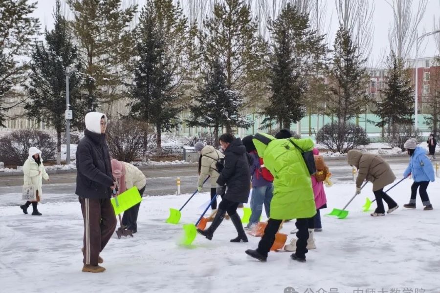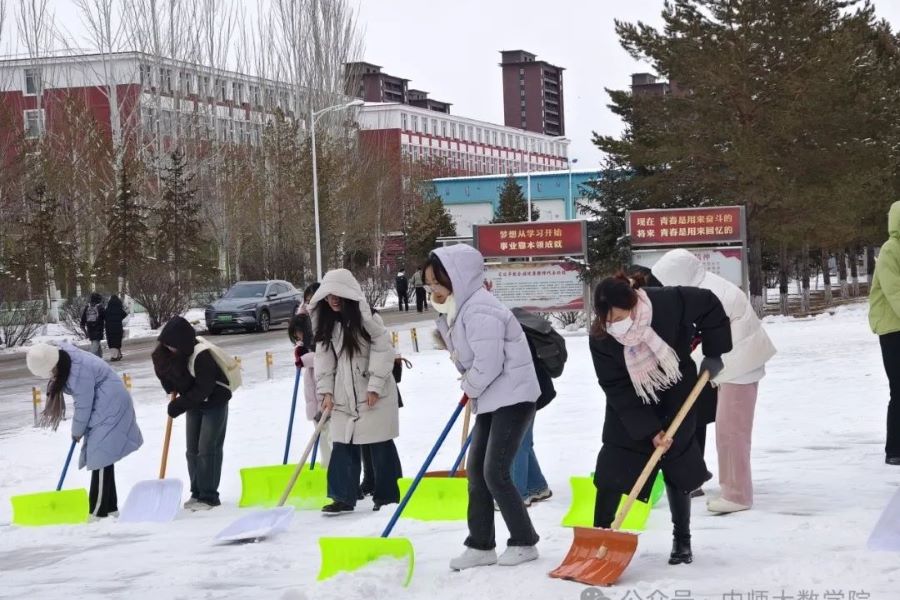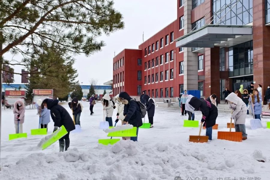 扫雪活动中,同学们分工明确,清理了教学楼下积雪较厚的区域,确保了师生们的出行安全。