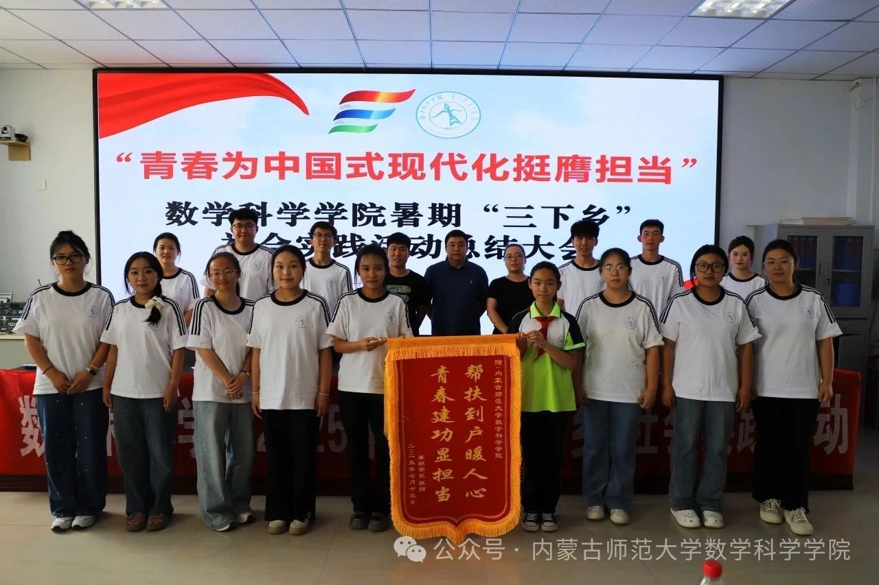 7月15日下午,英国威廉希尔唯一官网2025年暑期“三下乡”社会实践活动总结大会在四子王旗实验小学召开。本次大会以“青春为中国式现代化挺膺担当”为主题,全面回顾和总结了此次“三下乡”实践活动的丰硕成果,展现了青年学子在社会实践中“受教育、长才干、作贡献”的青春风采。
