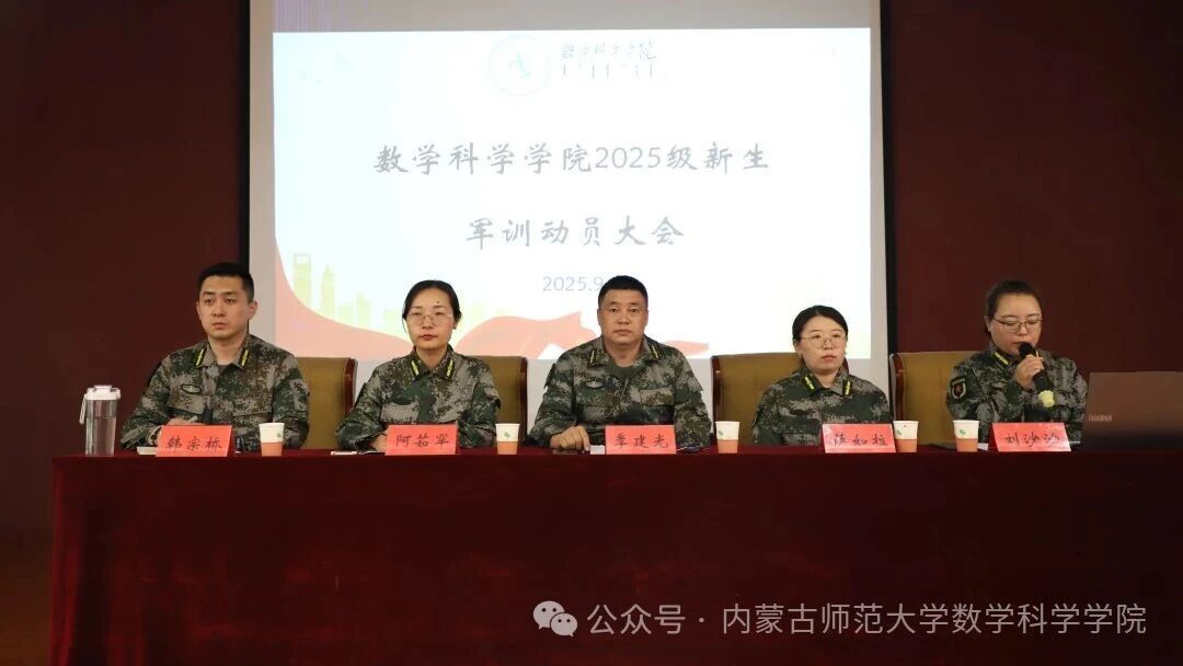 9月1日晚,学院于科技楼报告厅举办2025级新生军训动员大会。本次会议由学生工作与就业办公室主任刘沙沙老师主持,学院党委副书记季建光老师、团总支副书记阿茹罕老师、学生工作与就业办公室副主任萨如拉老师、学生工作辅导员韩宗桥老师参加。