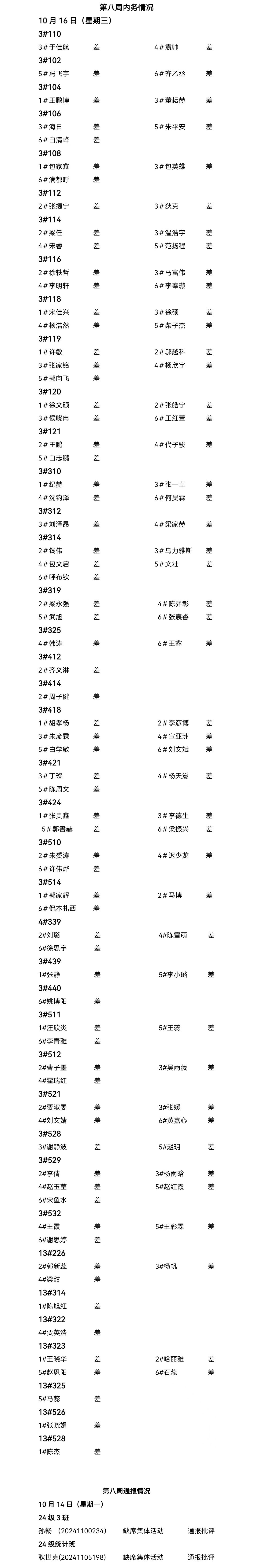 英国威廉希尔唯一官网2024——2025年度第一学期第八周通报情况