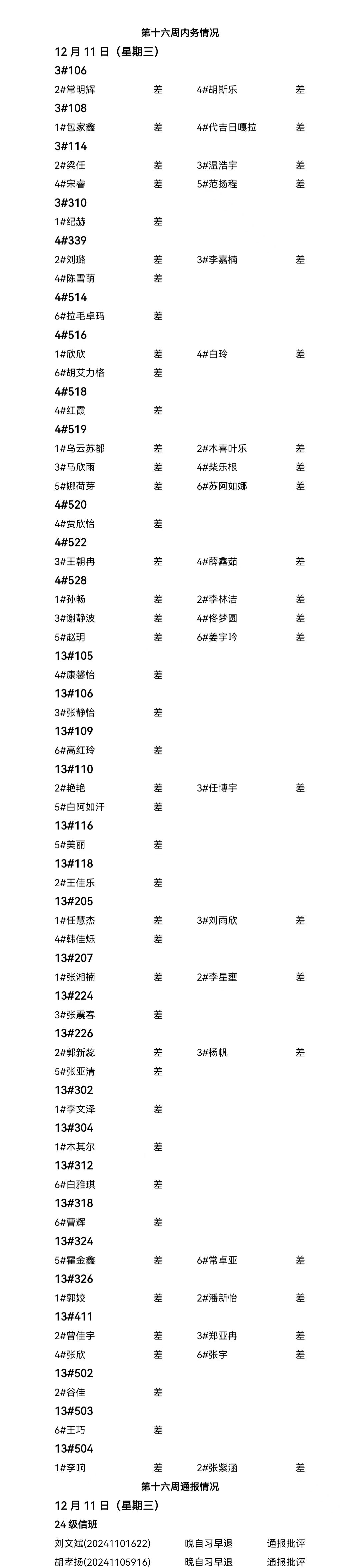 英国威廉希尔唯一官网2024——2025年度第一学期第十六周通报情况