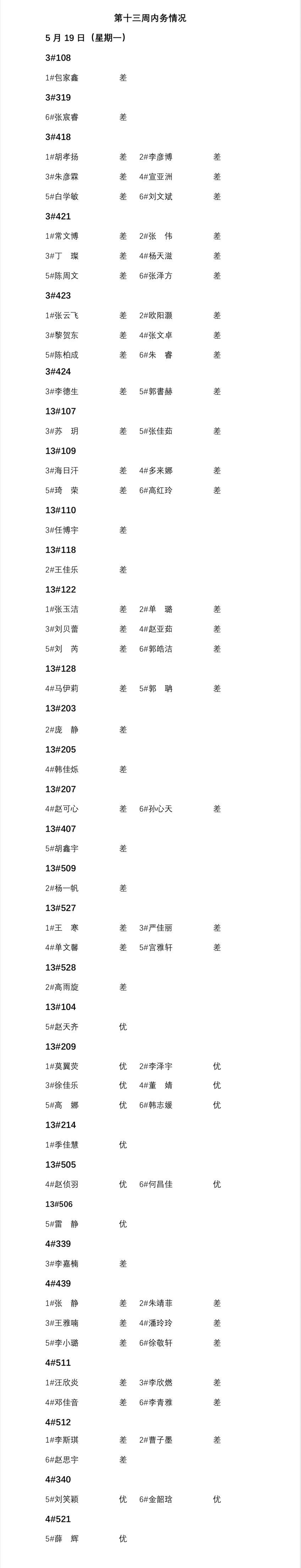 英国威廉希尔唯一官网2024——2025年度第二学期第十三周通报情况