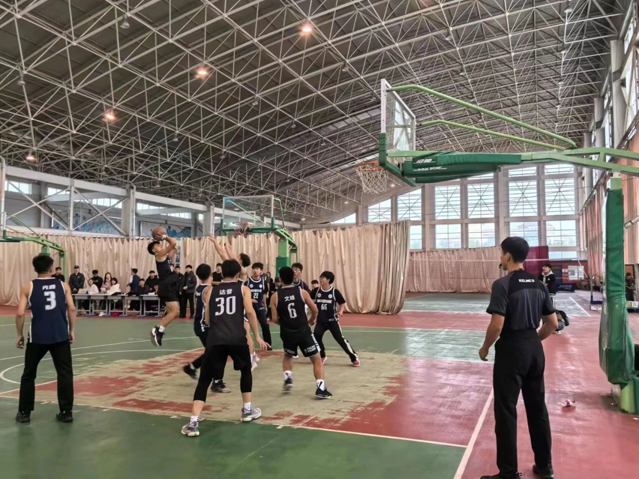 赛场上,队员们个个生龙活虎,斗志昂扬。他们时而巧妙配合,打出精彩的团队进攻;时而凭借个人能力,完成高难度的得分。每一次精彩的表现都能引发观众们的阵阵欢呼和掌声,场下的观众也不甘示弱,他们用热情的呐喊和激昂的助威声为队员们加油鼓劲,将比赛气氛推向高潮。