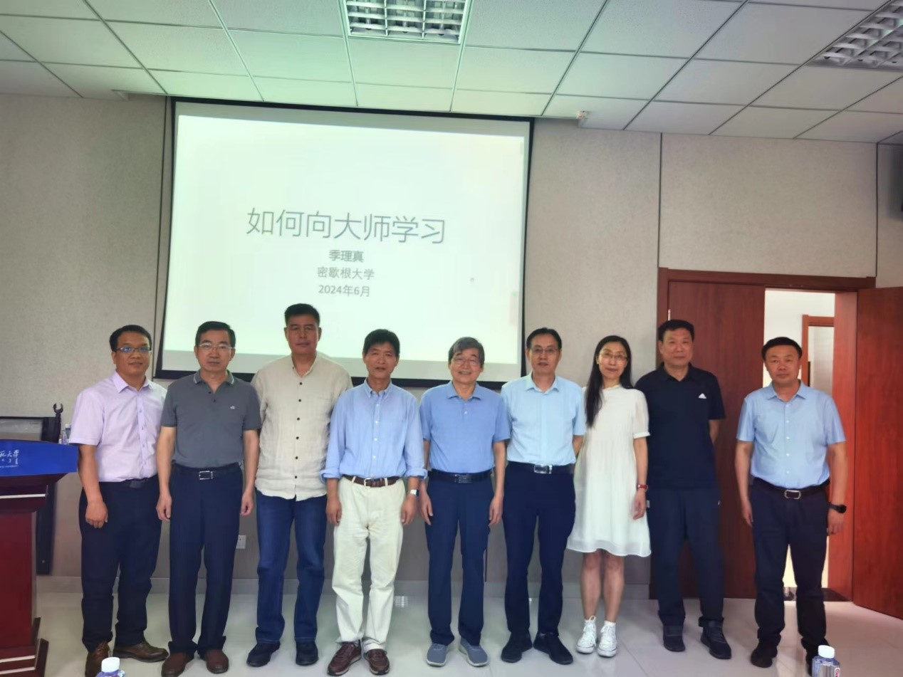 6月13日下午,无穷维哈密顿系统及其算法应用教育部重点实验室、教育部数学与应用数学专业虚拟教研室、内蒙古应用数学中心系列讲座在我校赛罕校区文史楼339学术报告厅举行。著名华人数学家、美国密西根大学教授、清华大学丘成桐数学科学中心兼职教授季理真教授应邀作了题为“如何向大师学习”的学术报告。我校原党委书记、内蒙古应用数学中心主任阿拉坦仓教授,科学技术史研究院郭世荣教授、代钦教授和原研究生院院长刘官厅教授及威廉希尔官网师生90余人聆听了本次报告。报告由包霞副院长主持。