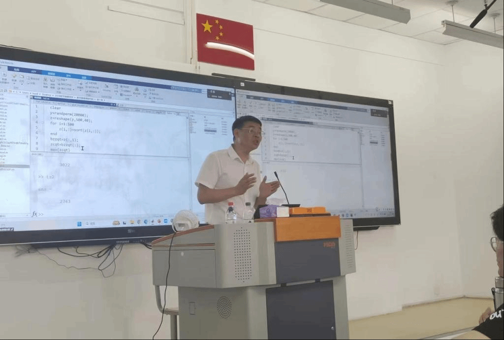 司守奎教授为集训成员讲解了数学规划、排队论、图论以及部分机器学习等经典算法和模型。并且,通过将Python和Matlab俩个编程软件对比结合使用,向集训成员展示了由编程实现算法的过程。让同学们对数学建模和编程之间的联系又多了一份深刻的体会和认识。