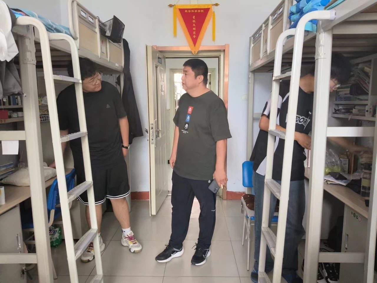 学院老师深入学生宿舍,走访慰问返校学子。在走访过程中,学院老师与同学们就暑期收获、新学期学业管理以及人生规划等进行了交流指导,同时,还提醒同学们提高安全意识,注意用电安全,自觉保持干净整洁的宿舍环境,共同维护好良好的学习氛围。此外,老师们还对新生宿舍的住宿环境进行了预先检查,为迎新生“到家”做好了充分准备。