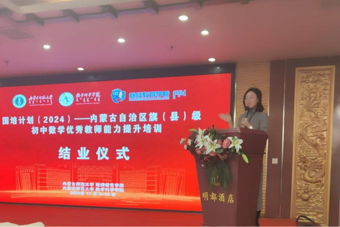 2024年11月15日,“国培计划(2024)——内蒙古自治区旗(县)级初中数学优秀教师能力提升”培训在山东省淄博市圆满落幕。本次培训由英国威廉希尔唯一官网继续教育学院主办、英国威廉希尔唯一官网承办,学员是来自全区各盟市选派来的50位旗(县)级初中数学优秀教师,旨在为各盟市教科研质量的提高注入新动力。培训为期两周:在英国威廉希尔唯一官网集中研修1周,在山东省淄博高新区实验中学跟岗实践1周。培训班班主任及全体培训学员出席了结业仪式,仪式由郑佳璇老师主持。