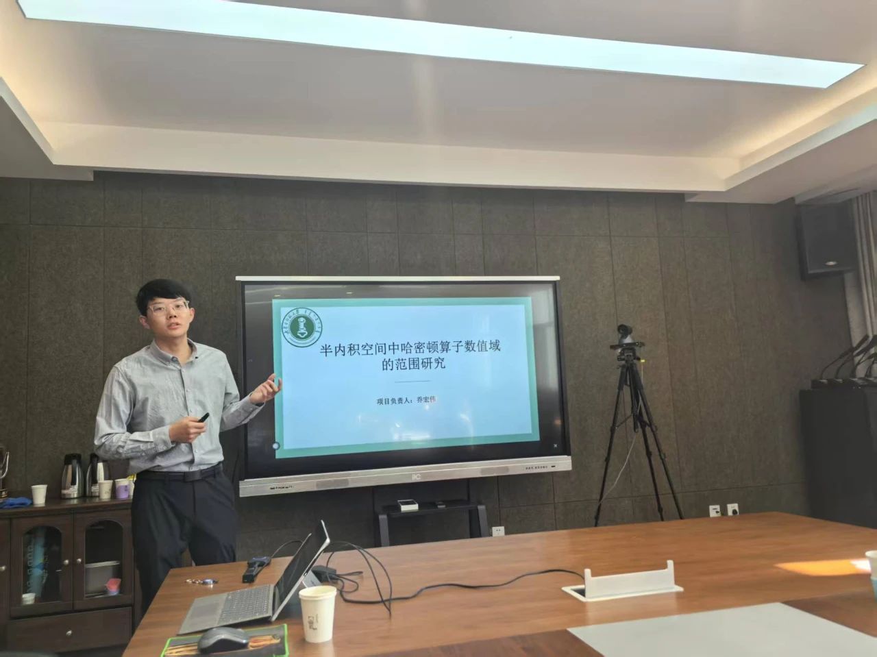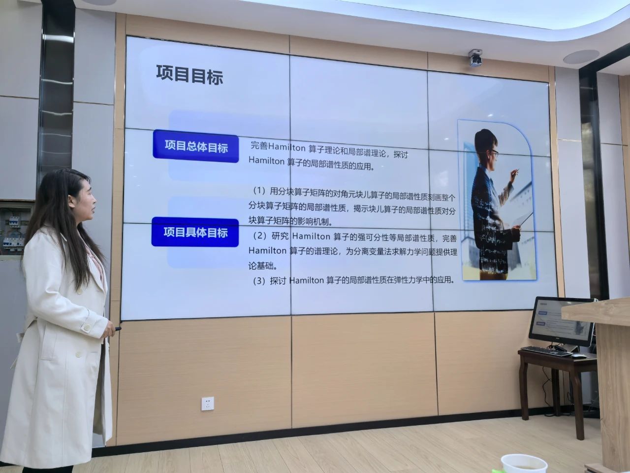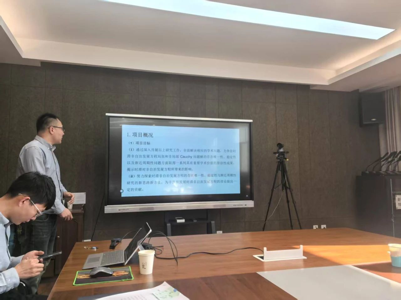 4月24日-26日,数学一流学科科研专项项目中期检查会议在赛罕校区顺利召开。无穷维哈密顿系统及其算法应用教育部重点实验室(培育)主任阿拉坦仓教授、内蒙古大学科技处处长刘全生教授、英国威廉希尔唯一官网科技处处长咏梅教授、研究生院刘官厅教授及英国威廉希尔唯一官网党委张伟书记、扎其劳院长、包霞副院长出席了本次会议。一流学科科研专项课题负责人及其团队共40余人通过线上线下相结合的方式参加了本次会议。会议由包霞副院长主持,强调通过本次项目中期检查,各课题组系统梳理研究进展,及时发现问题,优化研究方案,同时得到专家的方向性指导,为数学一流学科发展夯实基础。