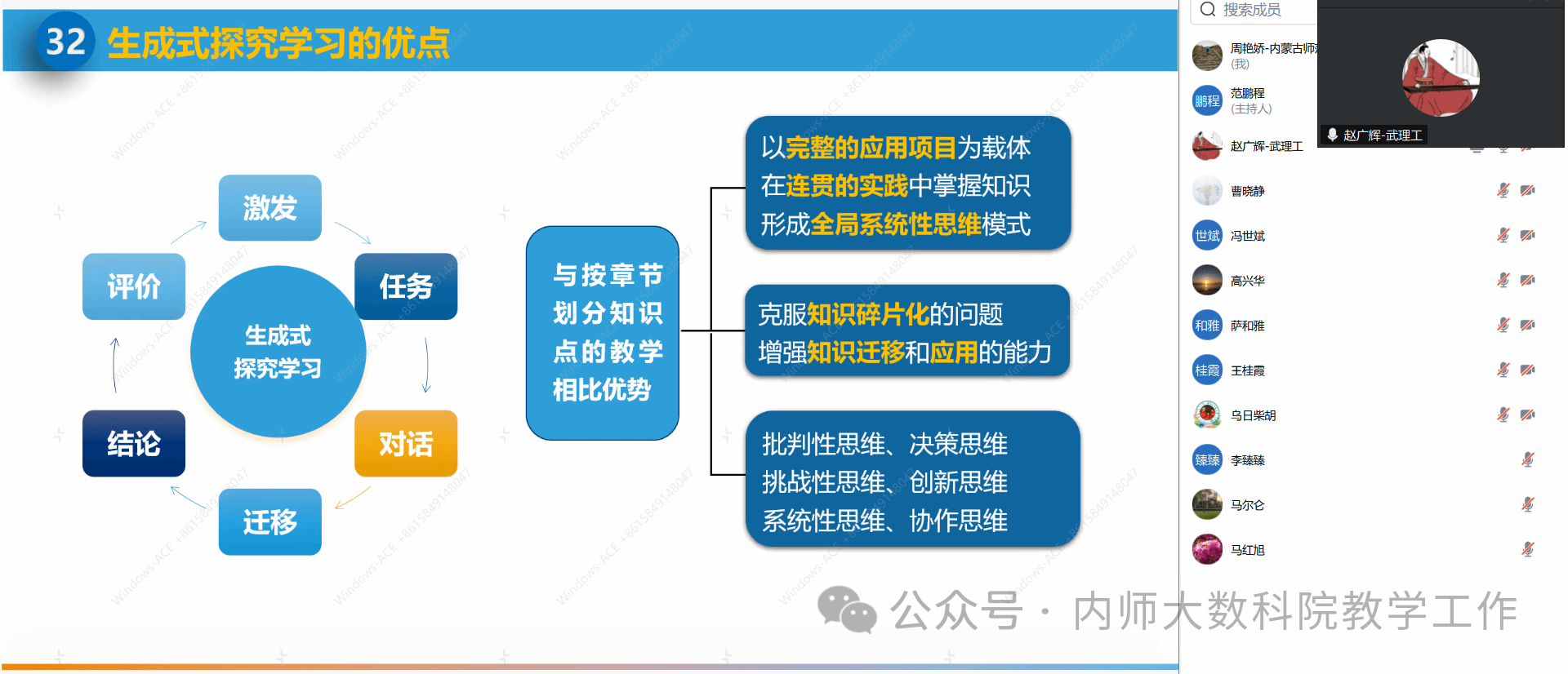 4月22日晚上7点半,英国威廉希尔唯一官网在线上举办了题为“大模型时代Python程序设计智慧课程建设与教学变革”的专题讲座,本次讲座邀请了武汉理工大学赵广辉教授主讲。会议由信息与计算科学系系主任范鹏程老师主持,萨和雅院长、数学系系主任乌日柴胡以及威廉希尔官网20余名教师共同参与了此次会议。