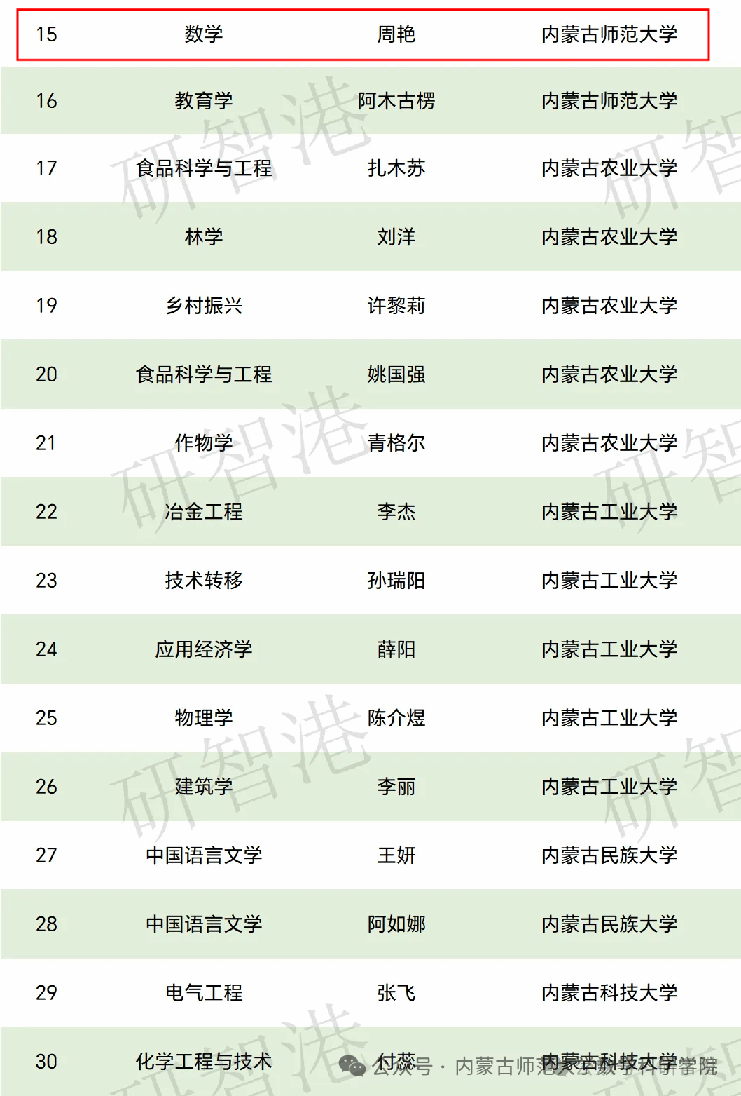 近日,2025年内蒙古自治区“高等学校青年科技人才发展项目”及首批“五大任务”关键技术研究专项评选结果正式揭晓,威廉希尔官网教师周艳副教授成功入选内蒙古高等学校青年科技英才,为学院科研事业发展再添佳绩。