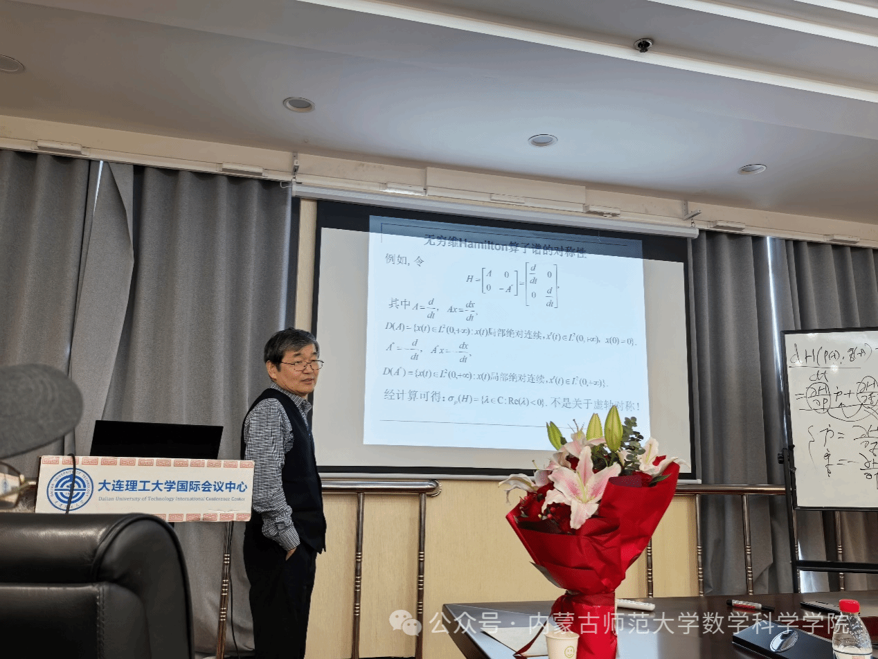 2025年5月16日,无穷维哈密顿系统及其算法应用教育部重点实验室主任阿拉坦仓教授应大连理工大学英国威廉希尔唯一官网邀请,在可积系统与数学机械化研讨会上作题为“无穷维Hamilton算子的谱对称及其完备性介绍”的学术报告。