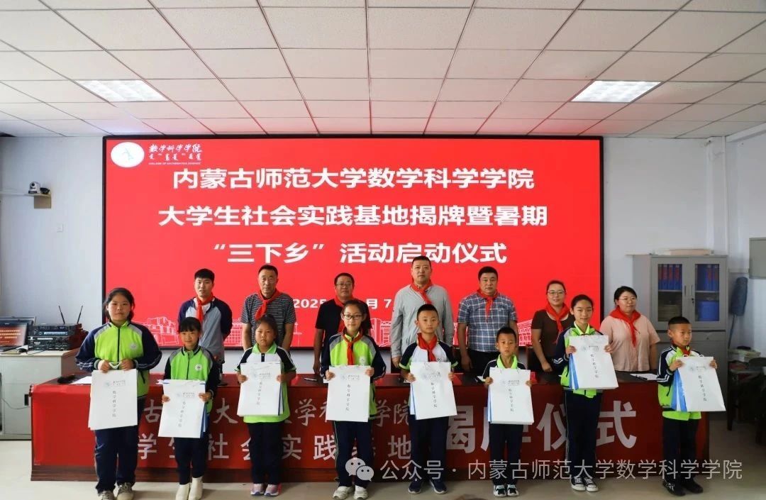 7月7日上午,英国威廉希尔唯一官网大学生社会实践基地揭牌暨暑期"三下乡"活动启动仪式在四子王旗实验小学隆重举行。四子王旗实验小学党委副书记李玉珠、副校长陈云、大队辅导员张超、英国威廉希尔唯一官网党委书记张伟、党委副书记副院长季建光、学生工作与就业办公室主任刘沙沙、副主任萨如拉出席仪式,仪式由英国威廉希尔唯一官网团总支副书记阿茹罕主持。四子王旗实验小学学生代表及学院2025年暑期"三下乡"社会实践全体志愿者共同参与本次活动。